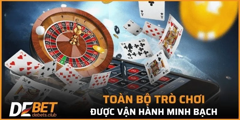 Toàn bộ trò chơi tại DEBET đều được vận hành minh bạch, rõ ràng và công khai. Hội viên khi tham gia có trách nhiệm hoàn toàn với mọi lựa chọn và hành động cá nhân. Để trở thành một hội viên văn minh, bạn cần tránh mọi hành vi gian lận, thao túng kết quả hay phản ứng tiêu cực khi thua cuộc. Hãy chủ động kiểm soát nguồn vốn, lập kết hoạch chơi hợp lý cũng như đưa ra quyết định sáng suốt trong quá trình trải nghiệm.